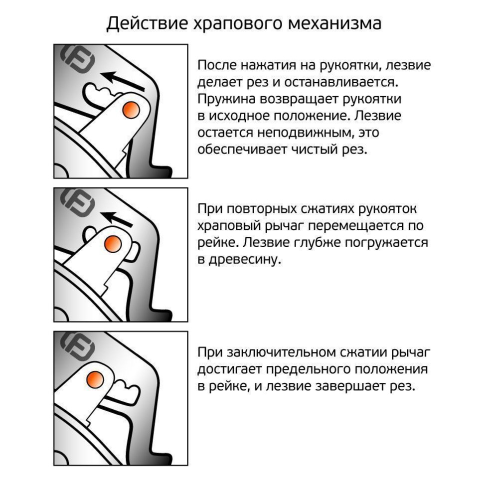 Секатор профессиональный с храповым механизмом для обрезки сухих веток. Чистый рез.