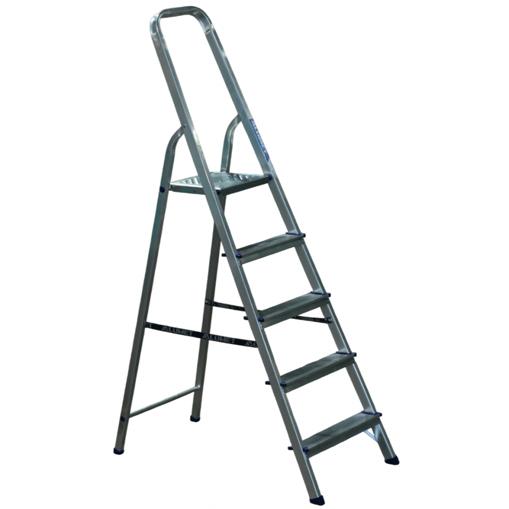 Стремянка серии АМ компании АЛЮМЕТ представляет собой свободностоящую переносную лестницу, сужающуюся к верху, имеющую сторону подъема (переднюю ногу), опорную сторону (заднюю ногу), рабочую площадку и раскладывающуюся для выполнения определённой задачи. Дуга безопасности конструктивно выполнена совместно со стороной подъема.