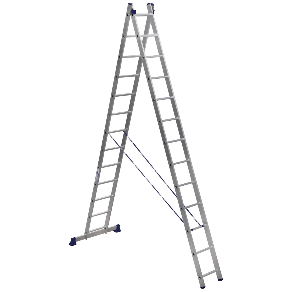 Лестница двухсекционная компании АЛЮМЕТ может использоваться как раздвижная приставная лестница и как свободностоящая двухсторонняя стремянка. Прочность конструкции в приставном виде обеспечивается необходимым перехлестом секций, что делает ее конструктивно сложнее, тяжелее и поэтому дороже по сравнению с односекционной лестницей. От «расползания» лестницу в конфигурации «двухсторонняя стремянка» удерживают страховочные ремни. Они же обеспечивают требуемый перехлест в конфигурации «приставная лестница». Конструкция неразборна, поэтому отдельно пользоваться каждым из двух элементов лестницы невозможно.