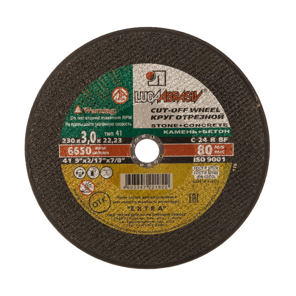 Круг отрезной предназначен для резки натурального и искусственного камня, кирпича, в том числе огнеупорного. Устанавливается на шлифмашину угловую. Зернистость - С54. Материал - C - карбид кремния черный. Связка BF - бакелитовая с наличием упрочняющих элементов.