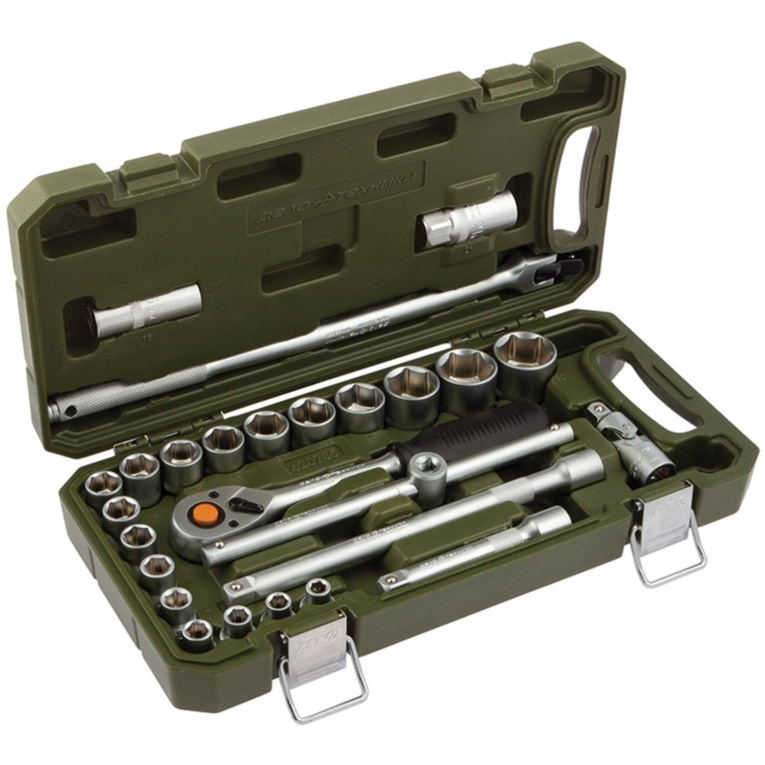 Комплектация набора инструментов: Головки шестигранные 1/2˝ - 8, 9, 10, 11, 12, 13, 14, 15, 16, 17, 18, 19, 21, 22, 24, 27, 30, 32 мм;