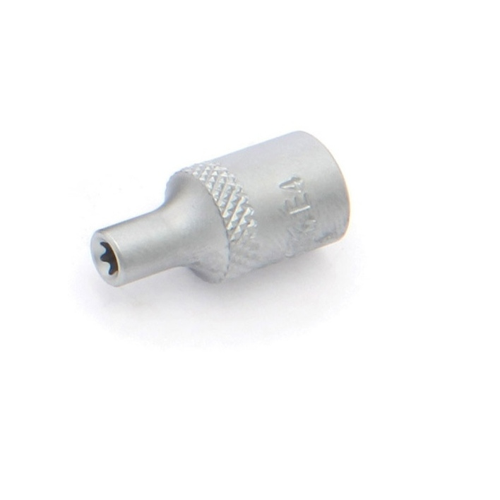 Torx (Торкс) – шестилучевой профиль, в котором направление усилия распределяется перпендикулярно поверхности пятен контакта, благодаря чему их площадь при увеличении нагрузки быстро возрастает и повреждение граней практически исключено. Специальная рифленая накатка на основании головки улучшает сцепные характеристики и исключает проскальзывание в руках.