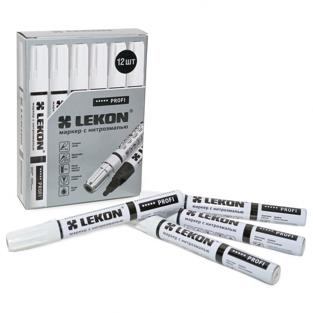 Строительный маркер-краска LEKON серии Profi производства Кореи служит для разметки отделочных материалов, маркировки товаров в торговом зале, маскировки дефектов мебели и бытовой техники.