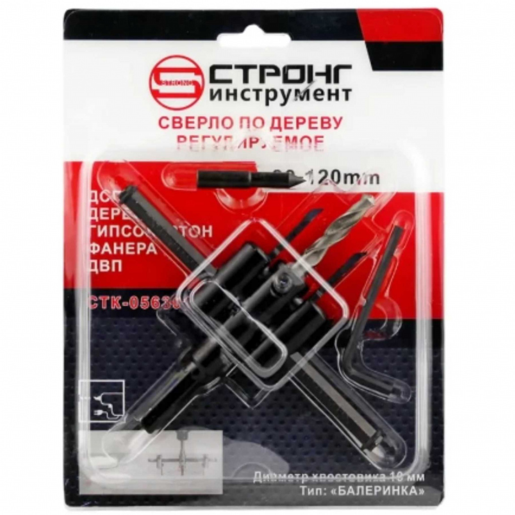 Сверло по дереву "Балеринка" регулируемое круговое двухрезцовое предназначено для высверливания отверстий большого диаметра в гипсокартоне, мягкой древесине, фанере. Режущие пластины перемещаются по горизонтальной направляющей относительно сверла сердечника на расстояние до 120 мм