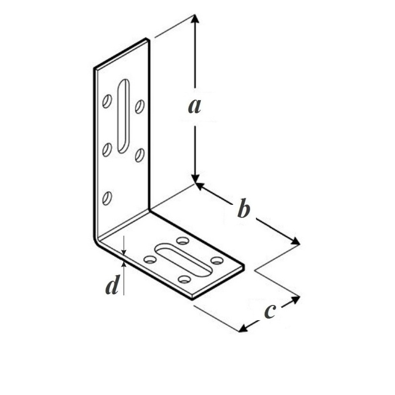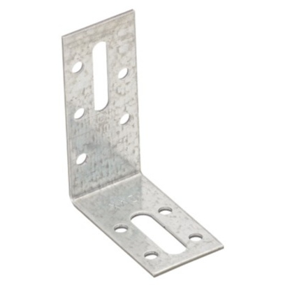 Регулируемый монтажный уголок предназначен для установки окон и перегородок из гипсокартона; продолговатые отверстия, кроме регулирующей, выполняют также компенсационную функцию, кроме того, такие отверстия можно использовать для предварительного монтажа, а окончательный выполнить с использованием круглых отверстий; позволяет скорректировать взаимное положение соединяемых элементов еще до забивания гвоздей, что может пригодиться при монтаже сложных конструкций или требующих точной сборки; благодаря тому, что соединяемые элементы могут несколько смещаться относительно друг друга, в креплении не возникают нагрузки, связанные с деформациями или изменением влажности дерева.