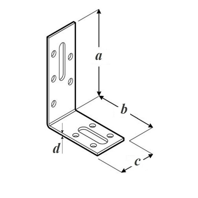 Регулируемый монтажный уголок предназначен для установки окон и перегородок из гипсокартона; продолговатые отверстия, кроме регулирующей, выполняют также компенсационную функцию, кроме того, такие отверстия можно использовать для предварительного монтажа, а окончательный выполнить с использованием круглых отверстий; позволяет скорректировать взаимное положение соединяемых элементов еще до забивания гвоздей, что может пригодиться при монтаже сложных конструкций или требующих точной сборки; благодаря тому, что соединяемые элементы могут несколько смещаться относительно друг друга, в креплении не возникают нагрузки, связанные с деформациями или изменением влажности дерева.