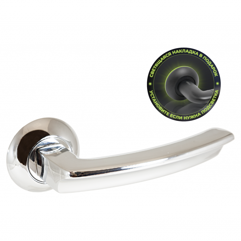 Ручка на круглой накладке для дверей толщиной 34-45 мм В комплекте идут пластиковые накладки с люминофором, которые светятся в темноте!!!