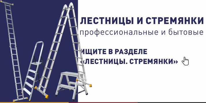 профессиональную строительную химию, надежные лестницы, мебельную фурнитуру, садовый инвентарь и т. д.