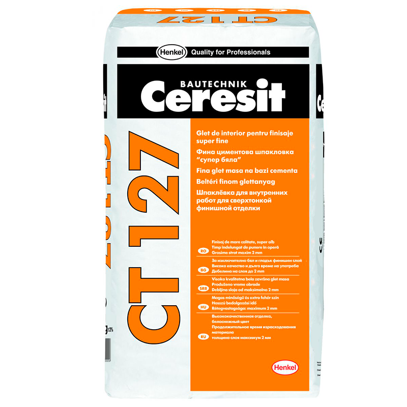 Полимерная шпаклевка Церезит CT 127 предназначена для финишного выравнивания поверхностей и заполнения мелких дефектов на бетонных, цементно-известковых, цементно-песчаных, гипсовых и т.п основаниях.
