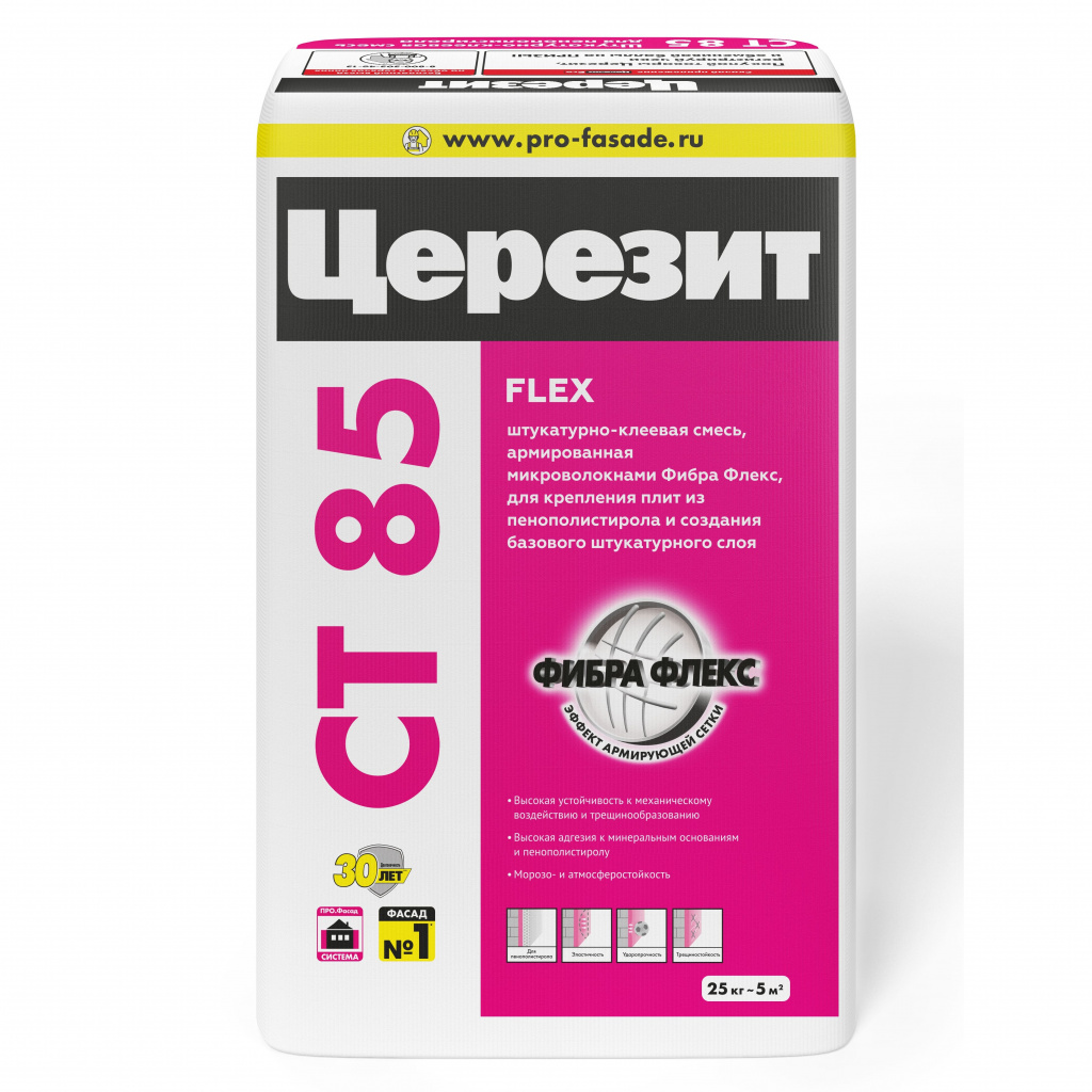 Смесь штукатурно-клеевая Ceresit CT 85 - базовый компонент для работ по обеспечению тепла стен с применением пенополистирола.