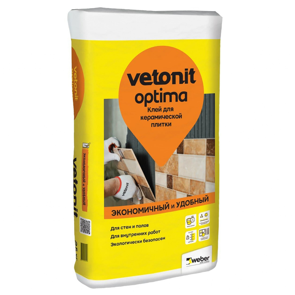 Vetonit Oптима - клей для керамической плитки для укладки на стены в сухих и влажных помещениях при внутренних работах. Легко наносится. При монтаже плитки не образуются пустоты. Обеспечивает прочное сцепление. Экологически безопасен.