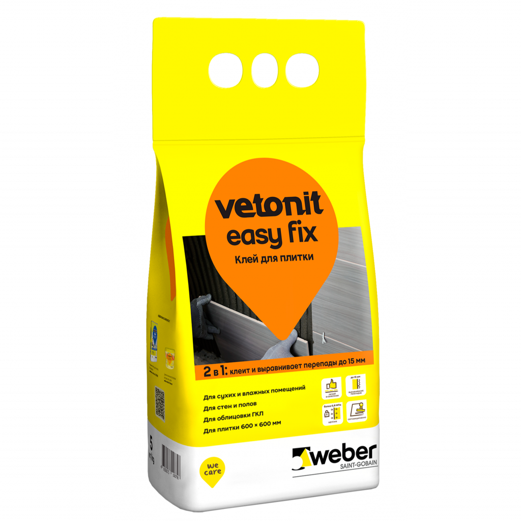Vetonit Easy Fix - пожаробезопасный, влагостойкий устойчивый к плесени, грибкам и бактериям. Подходит для таких оснований, как выдержанный бетон > 3 мес.( пенобетон, лёгкие бетоны); оштукатуренная поверхность; кирпичная кладка, ГКЛ, ГВЛ, ЦСП; природные облицовочные материалы.