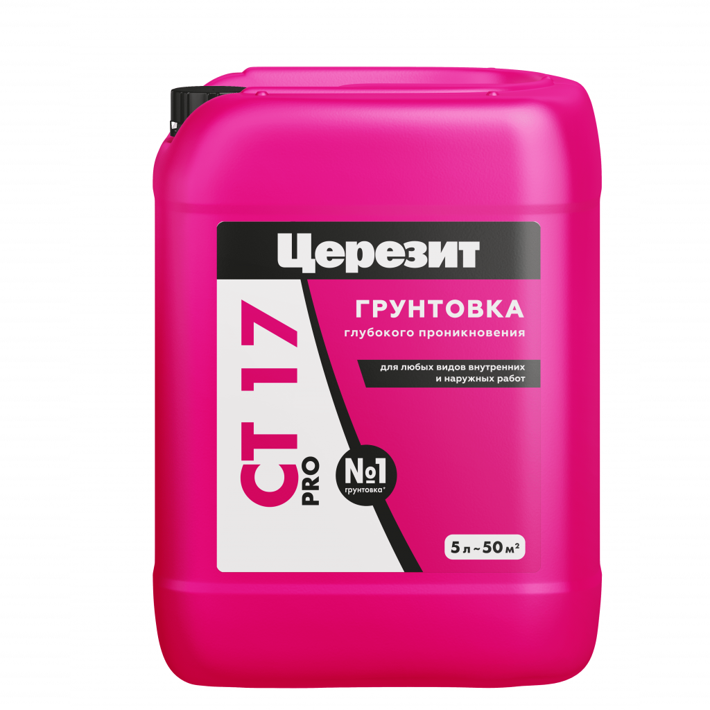 Церезит СТ 17 - водно-дисперсионная (глубокого проникновения) грунтовка наносится в качестве первичной обработки стен перед плиточным клеем, слоем смеси или штукатурки. Можно использовать на любых материалах основания: кирпичные стены, камень, гипсокартон, бетонный монолит, все виды штукатурок, стяжки, плиты с деревянным наполнением и т.д. Подходит как для фасада, так и для внутренних работ.