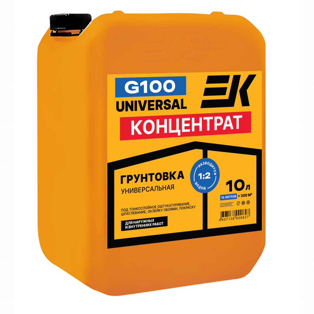 Грунтовка ЕК G100 на акриловой основе предназначена для обработки сильновпитывающих оснований (газобетон, пенобетон, силикатный кирпич, шлакобетонные и керамзитобетонные блоки), а также наливных полов и стяжек, цементных и гипсовых штукатурок, шпатлевок, монолитного бетона, ГКЛ, ГВЛ, ЦСП с целью снижения впитывающей способности, связывания остатков пыли, улучшения сцепления материалов, снижения расхода обойного клея и краски.