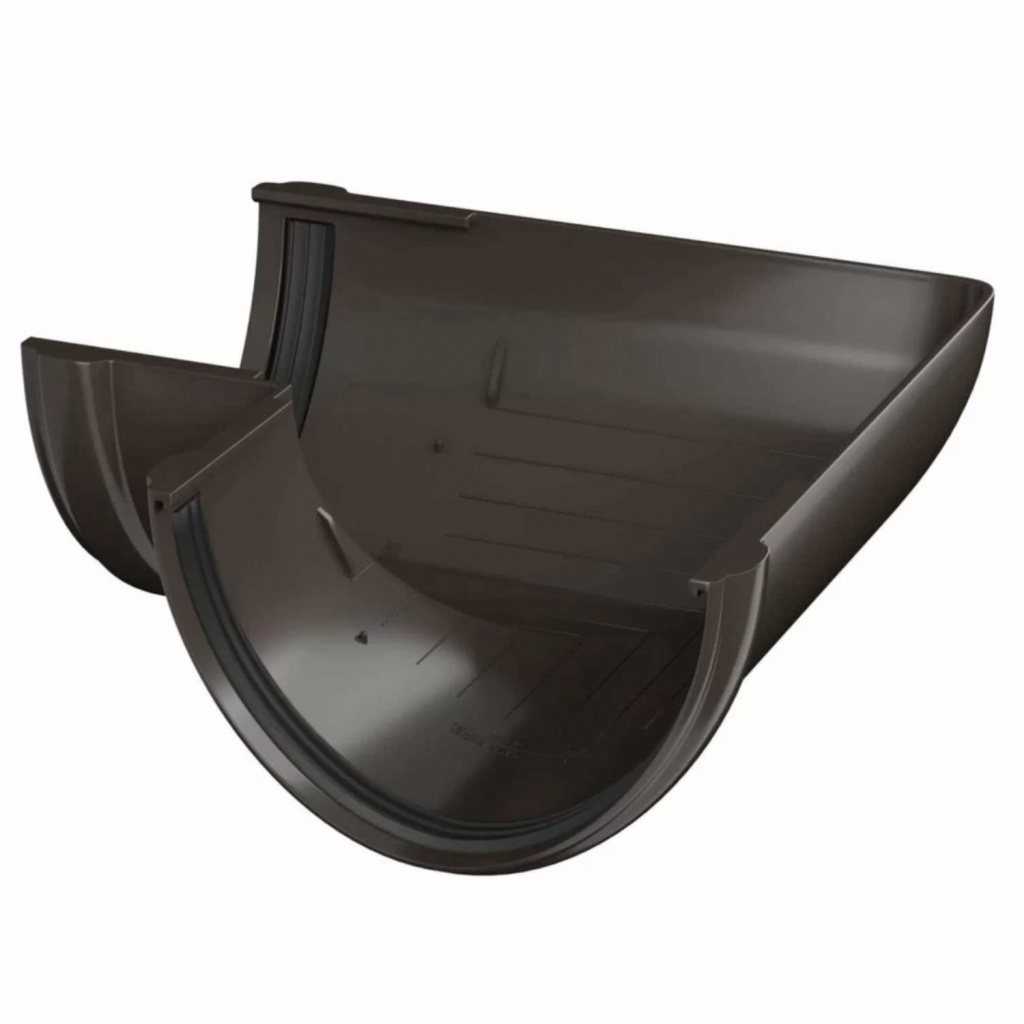 Угол желоба серии ОПТИМА 120/80 ТМ ТехноНиколь, связующий элемент в водостоке, используется для соединения желобов и направления потока воды.