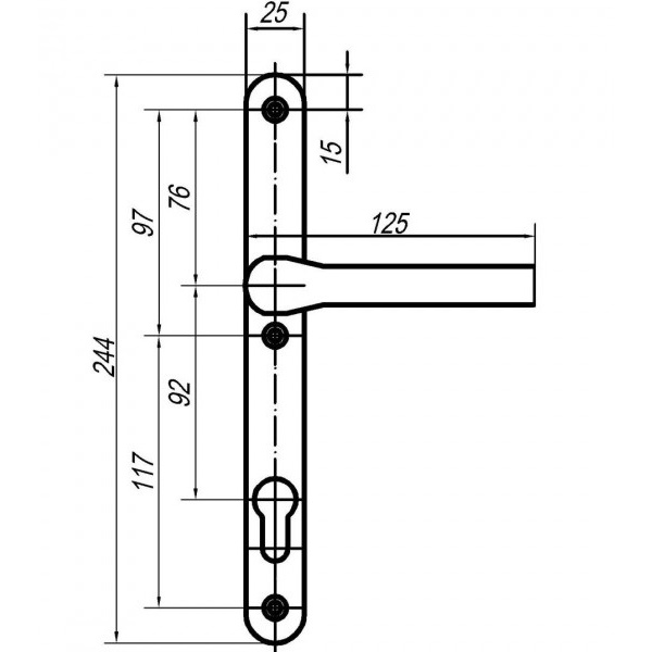 Межосевое расстояние (расстояние между осью ручки и осью замкового цилиндра) составляет 92 мм