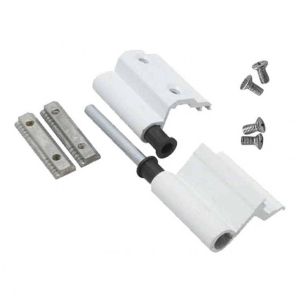 Петля закрепляется в профильные пазы рамы и створки при помощи металлических пластин (клемм) и винтов, входящих в комплект.