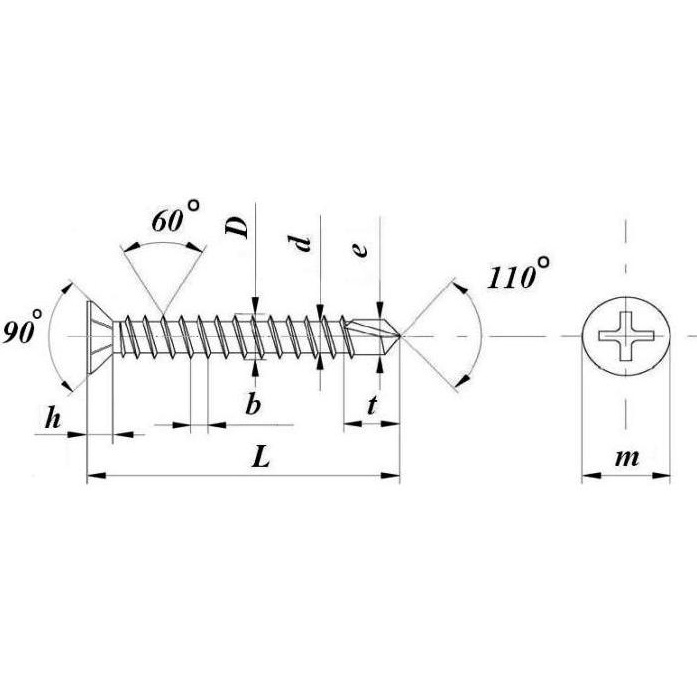 Саморез оконный с наконечником сверло и потайной головкой под крестовую биту или отвертку PH2 для сборки оконных блоков из пластикового и алюминиевого профиля толщиной до 2 мм.