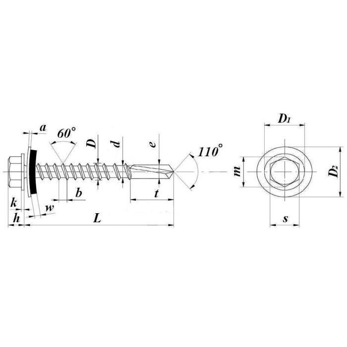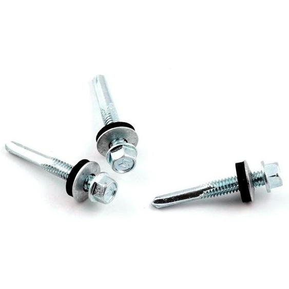 Кровельный саморез 4,8 х 51 мм с шайбой и резиновой прокладкой EPDM, наконечник сверло, оцинкованный