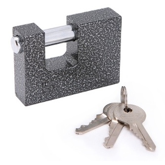 Замок навесной с прямой дужкой - латунный механизм секрета с английским ключом, автоматическое закрывание, цилиндровый механизм секрета.