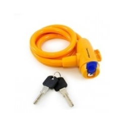 Замок навесной с тросом - стальной трос в пластиковой оплетке (10 мм - диаметр, 1000 мм - длина). Замок имеет цилиндровый механизм секрета, в комплекте 2 перфоключа.