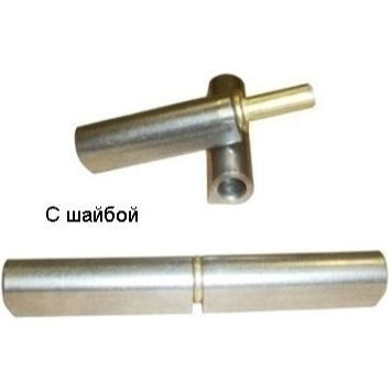 Петля гаражная каплевидная с шайбой используется для навешивания створок тяжелых металлических распашных ворот и калиток, отличается высокой надежностью и долговечностью; изделия небольшого диаметра могут использоваться для монтажа бронированных дверей, в том числе в жилых помещениях; на каждую створку крепится минимум по две петли, а максимальное количество точек крепления зависит от размера и веса ворот. ГОСТ 5088-2005