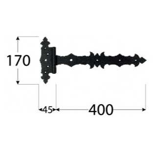 Петля декоративная воротная ZBD 400C, 400 x 45 x 170 х 90 x 3 мм, цвет черный
