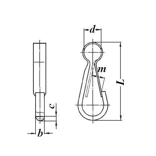 Карабин пружинный формы А предназначен для бытовых нужд, захвата и фиксации ремня или звена цепи на низких нагрузках; не предназначен для подъема груза.