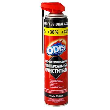 Профессиональный автомобильный очиститель ODIS "Professional Universal Car cleaner" для очистки тормозной системы, механизмов сцепления, карбюратора и других узлов двигателя, трансмиссии и ходовой части автомобиля. Эффективно и быстро удаляет следы масла, технических жидкостей, различных смазок, смол, нагара, асбестовой пыли и других трудно выводимых загрязнений. Очищает электрические контакты, следы клея, скотча и т.д.