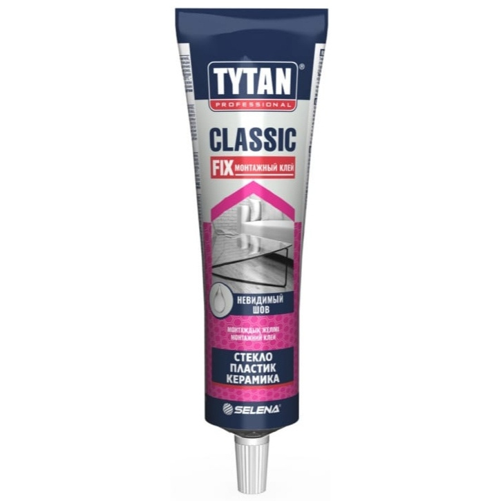 Монтажный каучуковый клей CLASSIC FIX торговой марки TYTAN PROFESSIONAL представляет собой универсальный прозрачный продукт, который образует эластичный невидимый шов, предназначен для приклеивания стекла, керамики, пластика, металла, древесины и ее производных на пористые и непористые основания.
