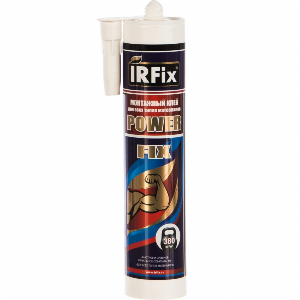 Монтажный клей IRFIX POWER FIX предназначен для надежного быстрого приклеивания тяжелых элементов, например плинтусов, изоляционных и стеновых панелей из дерева, ПВХ, пробки, декоративных деталей. Продукт используют внутри помещений - состав нейтрален и экологичен, не содержит растворителей - для установки подоконников и дверных рам. Клей отличается сильным первоначальным схватыванием и высокой скоростью отверждения влагой воздуха.