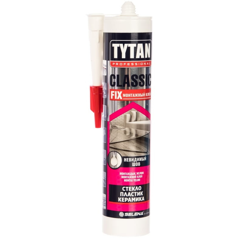 Монтажный каучуковый клей CLASSIC FIX торговой марки TYTAN PROFESSIONAL представляет собой универсальный прозрачный продукт, который образует эластичный невидимый шов, предназначен для приклеивания стекла, керамики, пластика, металла, древесины и ее производных на пористые и непористые основания.