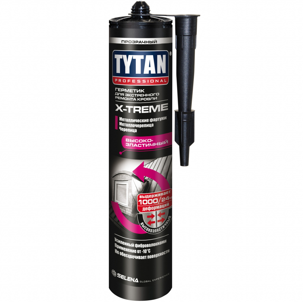 Высокопрочный каучуковый герметик для экстренного ремонта кровли X-TREME торговой марки Tytan Professional рекомендуется для поверхностей с различным тепловым расширением, для герметизации металлических листов черепицы, герметизации и соединения таких элементов, как дерево, стекло, бетон, металл, клинкер, поликарбонат, ПВХ, битумные мембраны, для герметизации трещин и щелей кровельного покрытия, металлических фартуков. Выдерживает 1000 деформаций /24 ч. Мгновенная и высокоэластичная герметизация, шов, усиленный волокнами, нанесение возможно от -10°C и во время дождя, не обесцвечивает поверхности, герметик можно окрашивать.