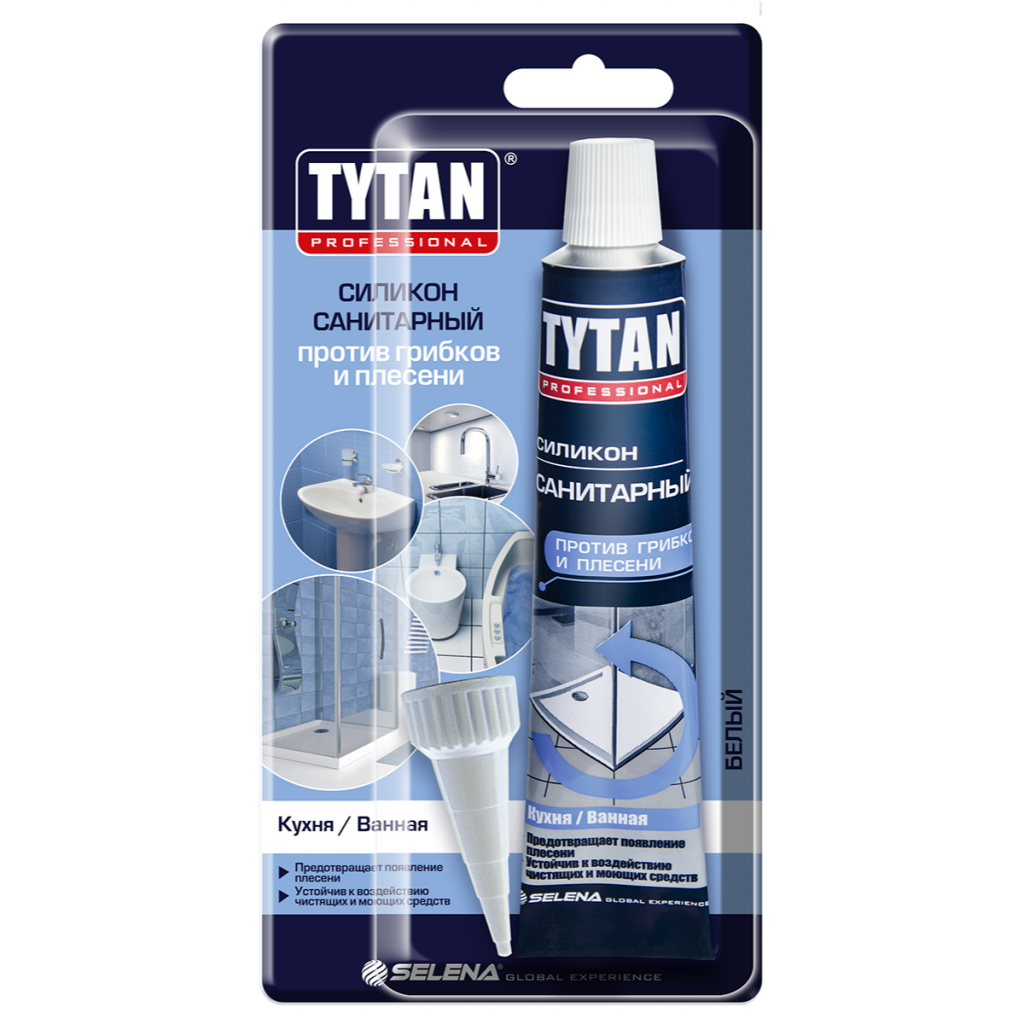 Герметик силиконовый санитарный с фунгицидом торговой марки Tytan Professional предназначен для применения в местах с повышенной влажностью, для уплотнения соединительных швов вокруг ванн, раковин, душевых кабин и бассейнов, для герметизации в системах канализации, водоснабжения, труб и соединений из ПВХ, для герметизации контейнеров, холодильных помещений. Содержит антигрибковые добавки, предотвращающие появление плесени, устойчив к большинству чистящих и моющих средств, образует долговечный шов, который со временем не меняет цвет. Выдерживает 1 цикл заморозки. Основа: силиконовый полимер с кислотной системой отверждения