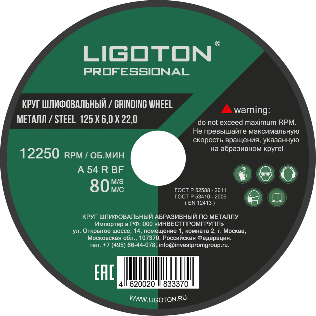 Круг по металлу от компании LIGOTON имеет уникальный состав абразивного зерна. Диск состоит на 95% из оксида алюминия и на 5% из циркония, что позволяет существенно повысить его прочность и износостойкость. Оптимальное соотношение размера абразивного зерна и твердости бакелитовой связки обеспечивает впечатляющий ресурс и высокую скорость обработки металла. Укрепление круга двухслойным стекловолокном гарантирует 100% безопасность при работе и максимально возможное количество резов.