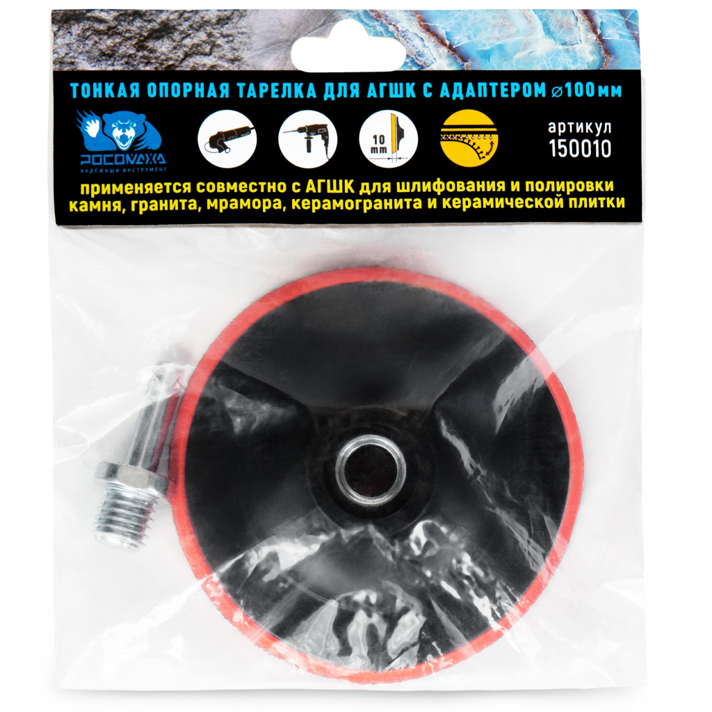 Применяется для закрепления алмазных гибких шлифовальных кругов для шлифования и полировки камня, гранита, мрамора, керамогранита, керамической плитки с использованием УШМ или дрели.