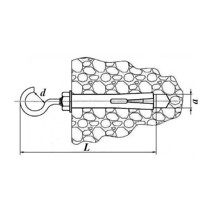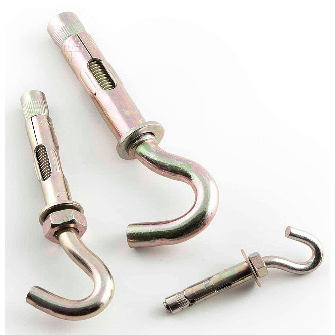 Анкерный болт с крюком применяется для монтажа всевозможных растяжек и подвесок, не имеющих грузоподъемных целей.