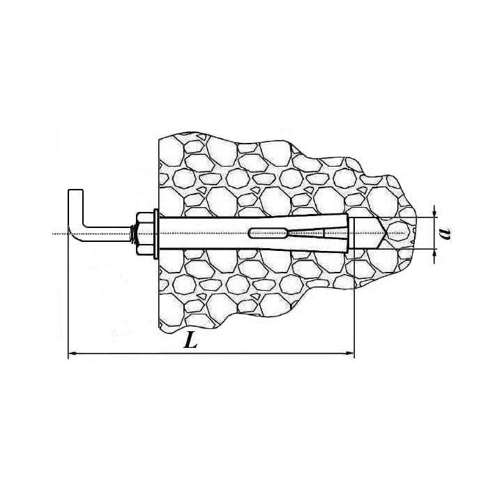 Анкерный болт с прямым крюком применяется для монтажа подвесных конструкций в бетон, природный и строительный камень, полнотелый кирпич.