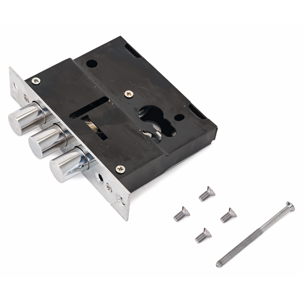 Замок врезной цилиндровый, без механизма секрета. Предназначен для установки в двери китайского производства, в качестве дополнительного замка.