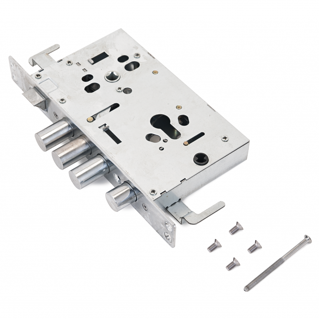 Имеет три цилиндрических стальных ригеля, диаметром по 18 мм Вылет ригелей 30 мм Три точки запирания.