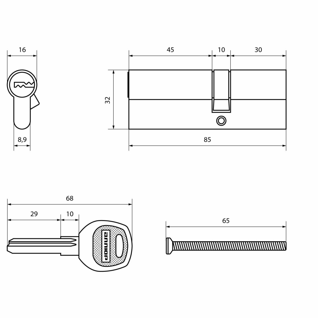 Механизм цилиндровый для врезных замков китайских металлических дверей с возможностью перекодировки. Европрофиль. Перфо-ключ.