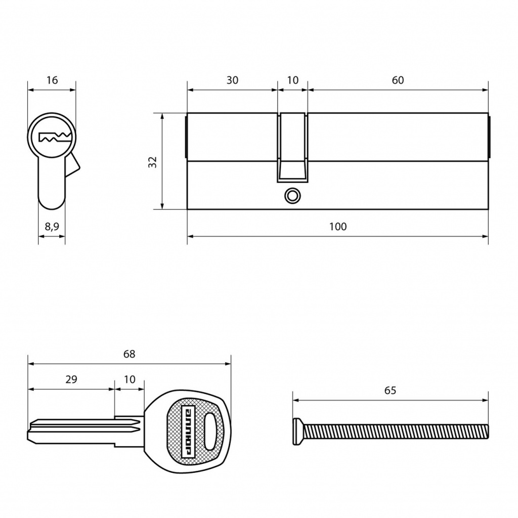Механизм цилиндровый для врезных замков китайских металлических дверей с возможностью перекодировки. Европрофиль. Перфо-ключ.