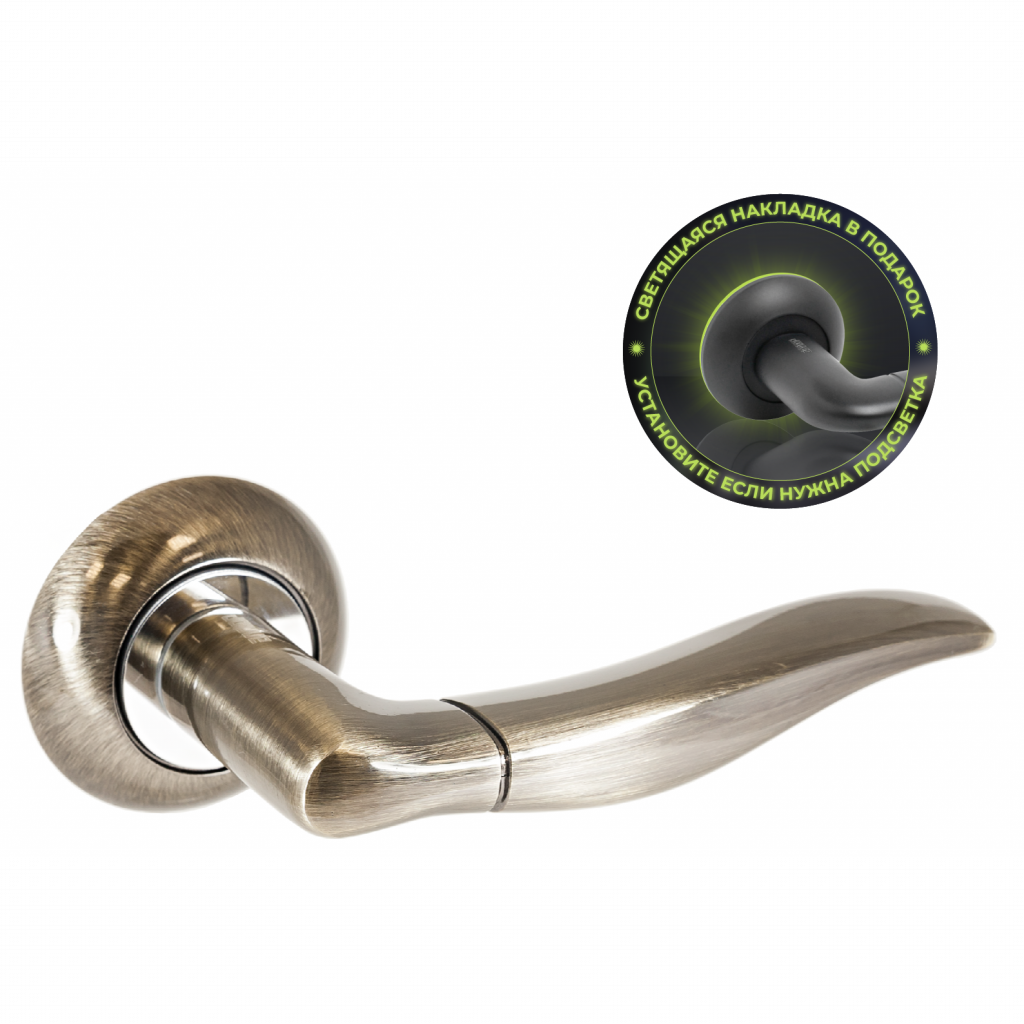 Ручка на круглой накладке для дверей толщиной 34-45 мм В комплекте идут пластиковые накладки с люминофором, которые светятся в темноте!!!