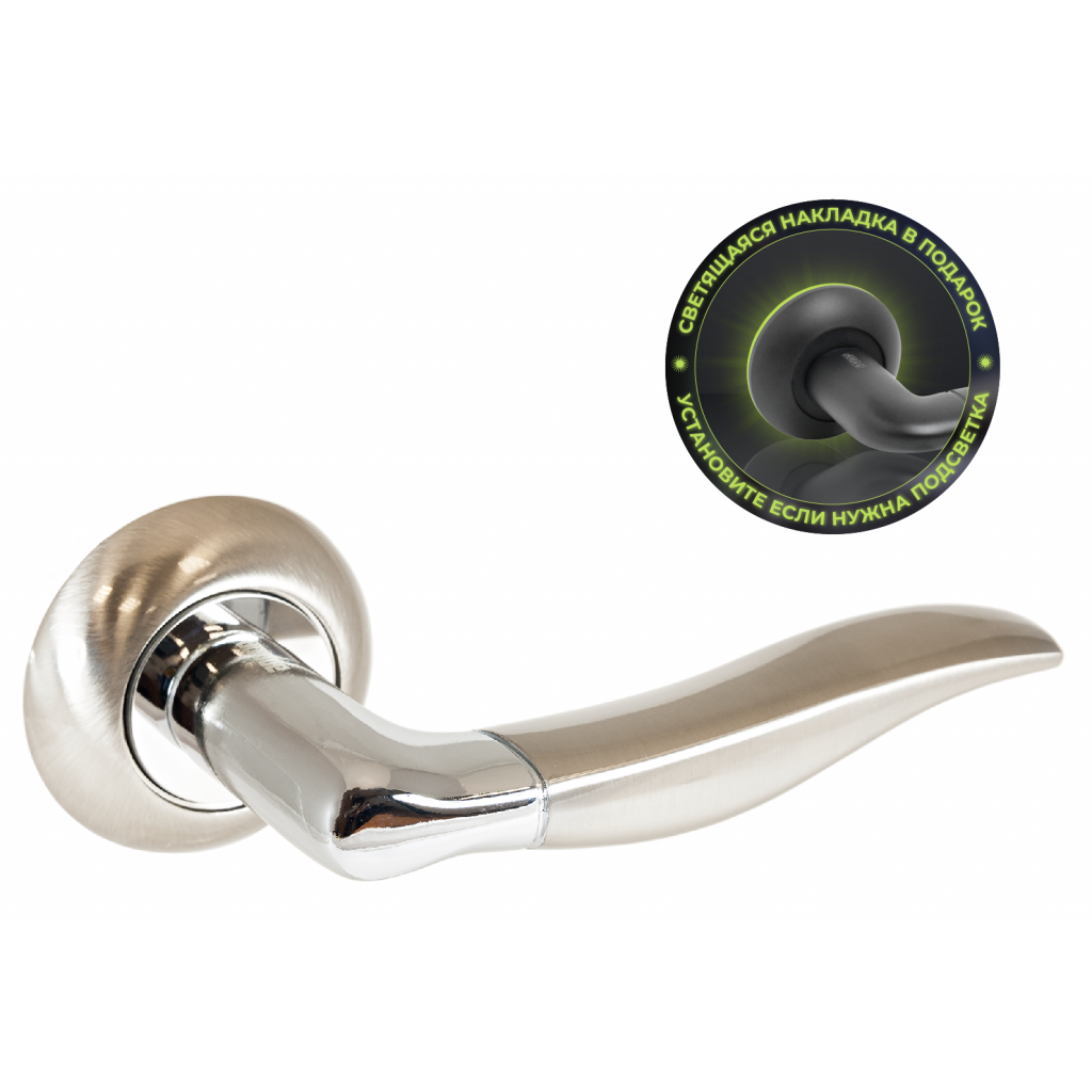 Ручка на круглой накладке для дверей толщиной 34-45 мм В комплекте идут пластиковые накладки с люминофором, которые светятся в темноте!!!