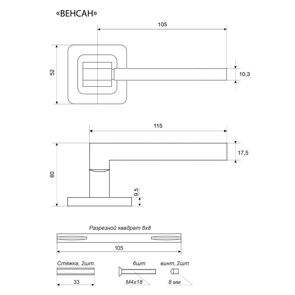 Ручка на квадратной накладке для дверей толщиной 34-45 мм