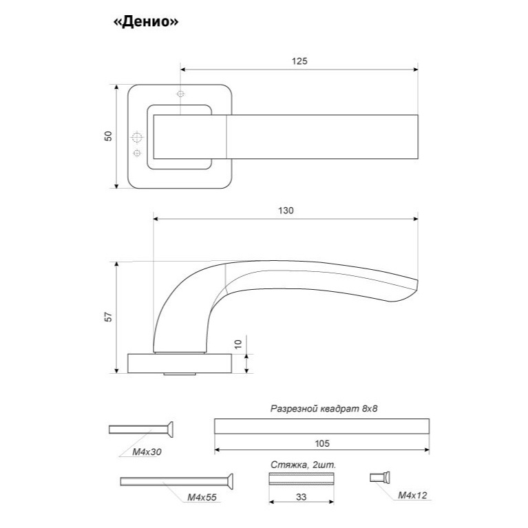 Ручка на квадратной накладке для дверей толщиной 34-45 мм