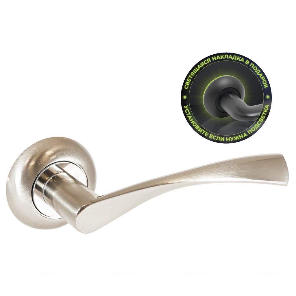 Ручка на круглой накладке для дверей толщиной 34-45 мм В комплекте идут пластиковые накладки с люминофором, которые светятся в темноте!!!