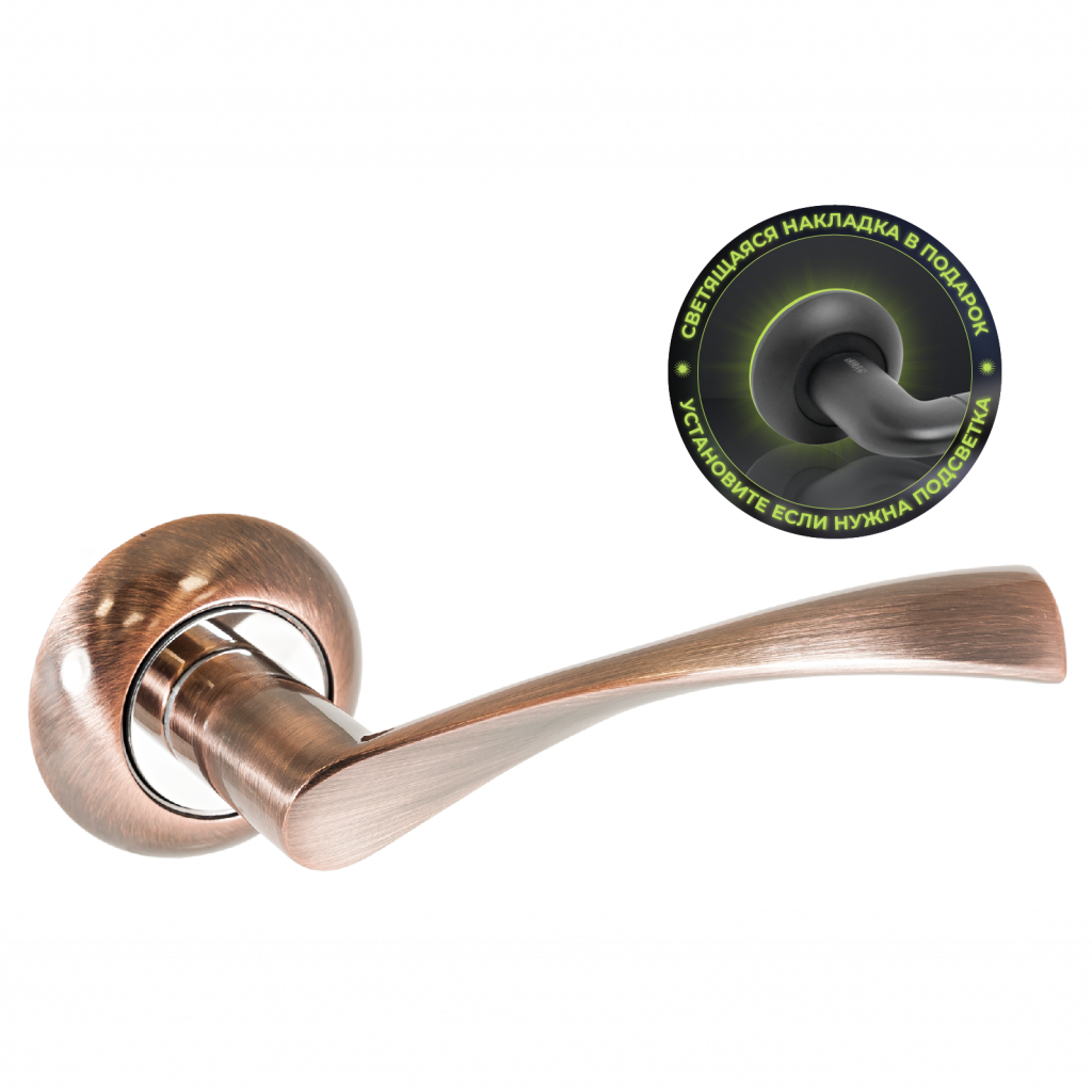 Ручка на круглой накладке для дверей толщиной 34-45 мм В комплекте идут пластиковые накладки с люминофором, которые светятся в темноте!!!