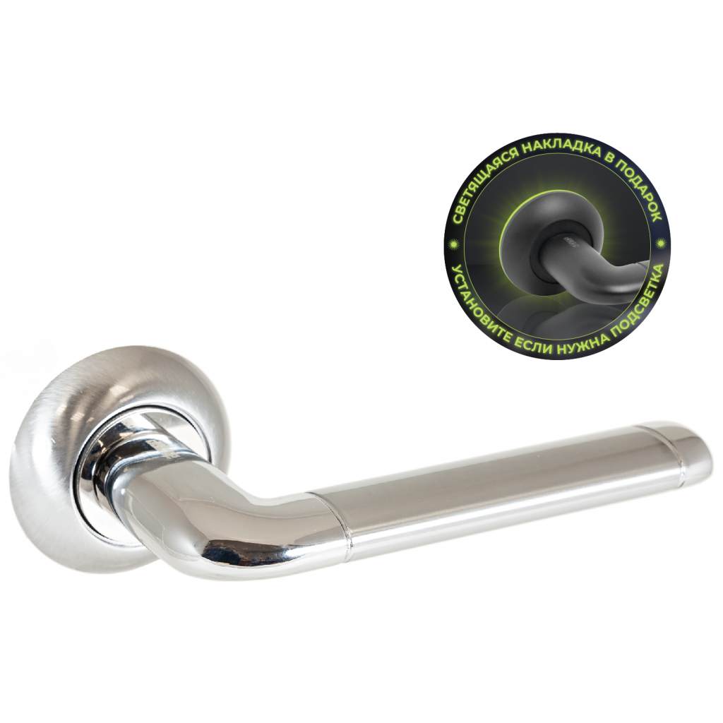 Ручка на круглой накладке для дверей толщиной 34-45 мм В комплекте идут пластиковые накладки с люминофором, которые светятся в темноте!!!