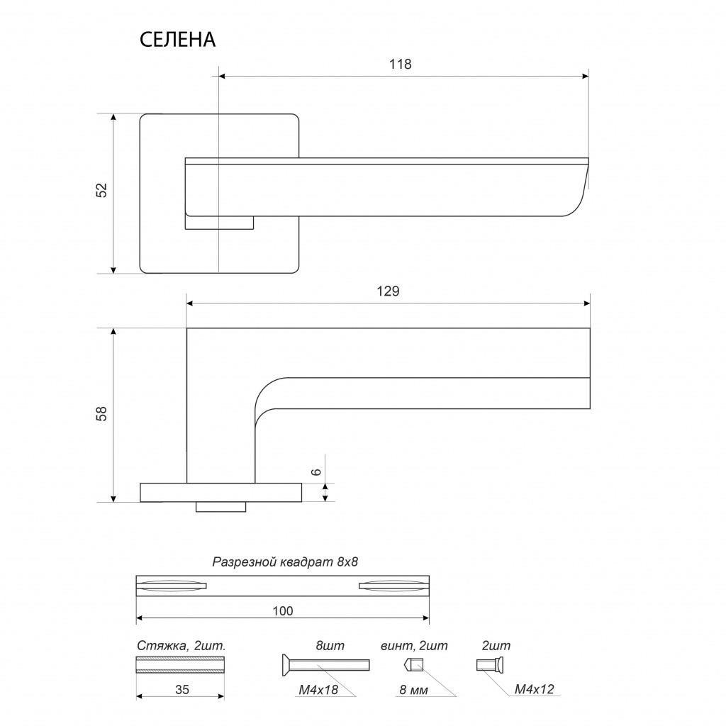 Ручка на квадратной накладке для дверей толщиной 34-45 мм